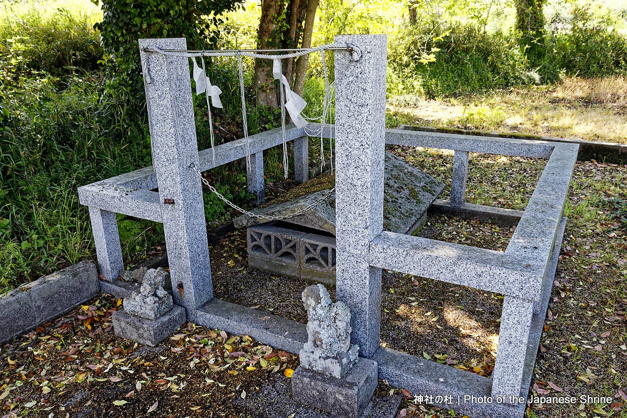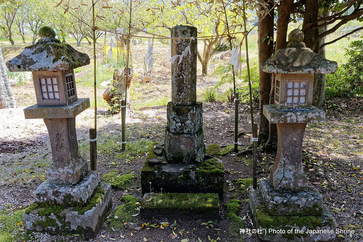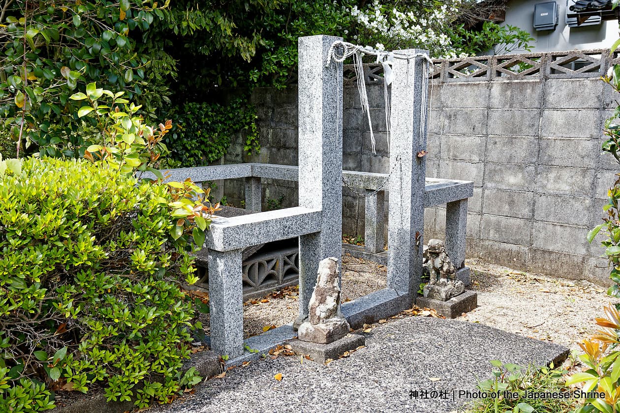 六角形の角柱に6柱の神名が刻まれており、出雲地方特有の摂社です。