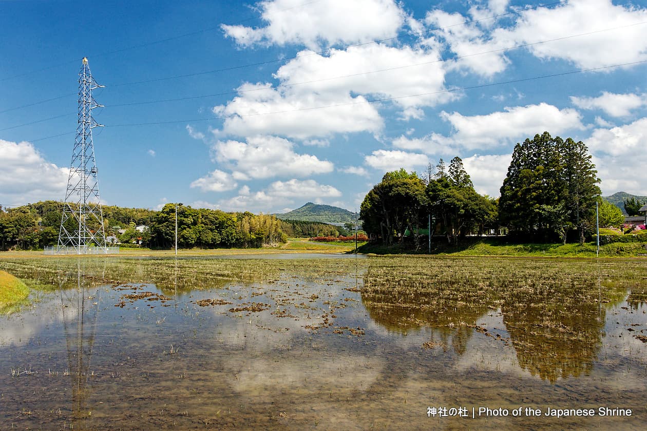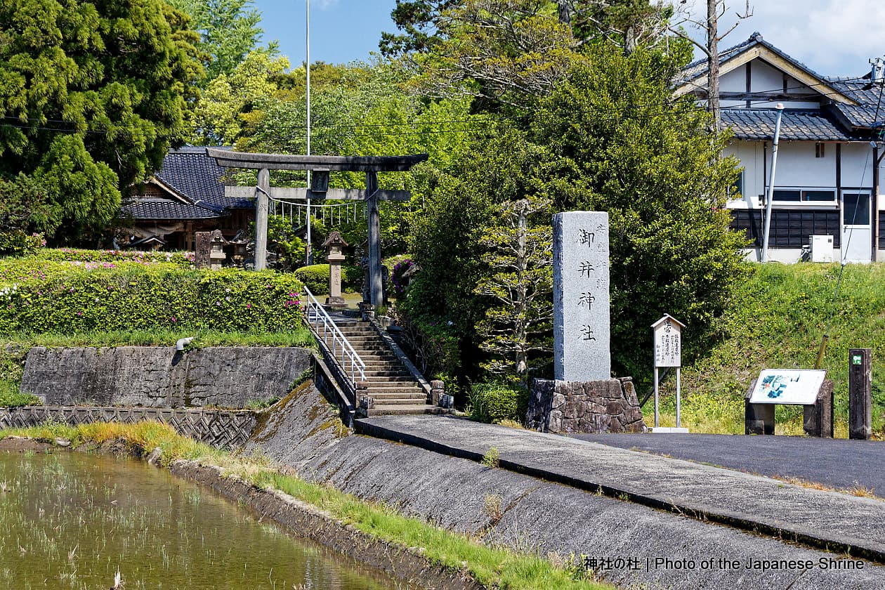 御井神社は、田んぼが広がる場所に鎮座するのどかな神社。